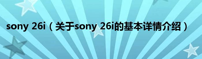 本文关于sony 26i的基本详情介绍就讲解完毕,希望对大家有所帮助。
