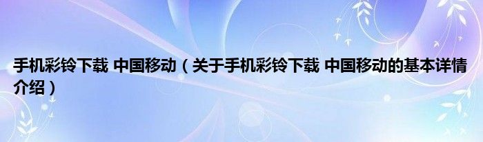本文关于手机彩铃下载 中国移动的基本详情介绍就讲解完毕,希望对大家有所帮助。