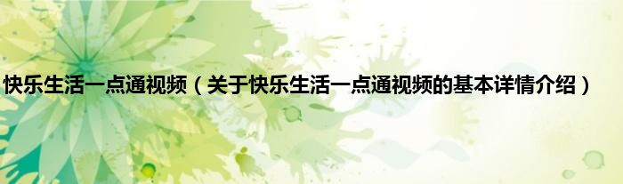 本文关于快乐生活一点通视频的基本详情介绍就讲解完毕,希望对大家有所帮助。
