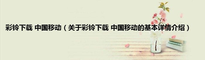 彩铃下载 中国移动(关于彩铃下载 中国移动的基本详情介绍)