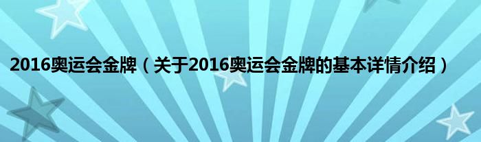 本文关于2016奥运会金牌的基本详情介绍就讲解完毕,希望对大家有所帮助。