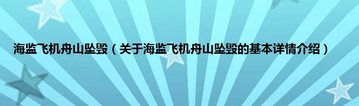 本文关于海监飞机舟山坠毁的基本详情介绍就讲解完毕,希望对大家有所帮助。