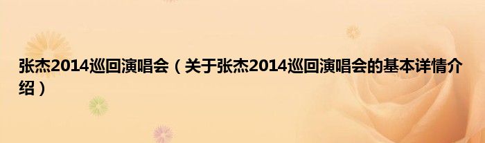 张杰2014巡回演唱会(关于张杰2014巡回演唱会的基本详情介绍)