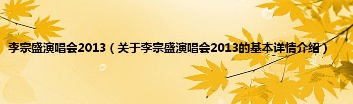 本文关于李宗盛演唱会2013的基本详情介绍就讲解完毕,希望对大家有所帮助。