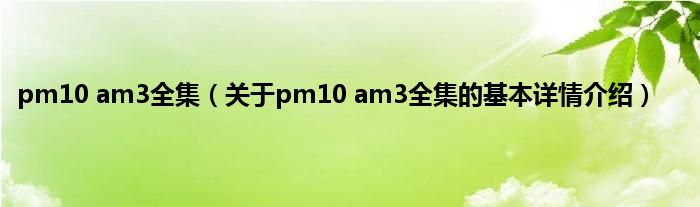 pm10 am3全集(关于pm10 am3全集的基本详情介绍)