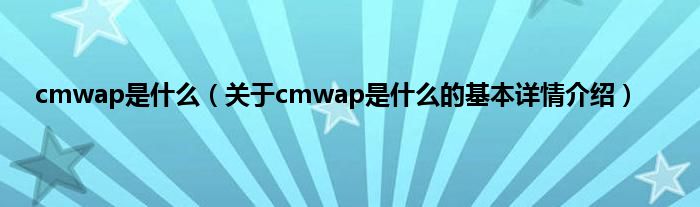本文关于cmwap是什么的基本详情介绍就讲解完毕,希望对大家有所帮助。