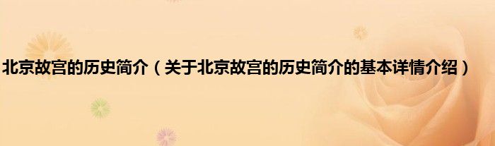 本文关于北京故宫的历史简介的基本详情介绍就讲解完毕,希望对大家有所帮助。