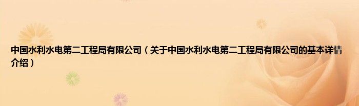本文关于中国水利水电第二工程局有限公司的基本详情介绍就讲解完毕,希望对大家有所帮助。