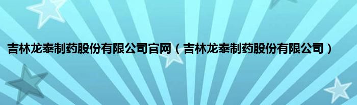 大家好,小问来为大家解答以上问题。吉林龙泰制药股份有限公司官网,吉林龙泰制药股份有限公司这个很多人还不知道,现在让我们一起来看看吧!