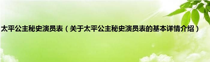 本文关于太平公主秘史演员表的基本详情介绍就讲解完毕,希望对大家有所帮助。