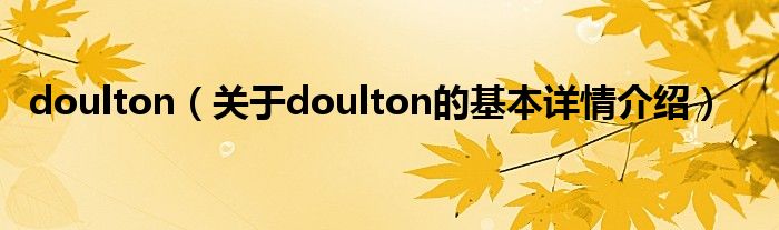 本文关于doulton的基本详情介绍就讲解完毕,希望对大家有所帮助。
