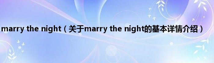 本文关于marry the night的基本详情介绍就讲解完毕,希望对大家有所帮助。