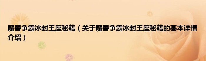 本文关于魔兽争霸冰封王座秘籍的基本详情介绍就讲解完毕,希望对大家有所帮助。