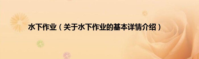 本文关于水下作业的基本详情介绍就讲解完毕,希望对大家有所帮助。