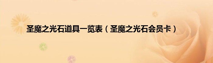 大家好,小问来为大家解答以上问题。圣魔之光石道具一览表,圣魔之光石会员卡这个很多人还不知道,现在让我们一起来看看吧!