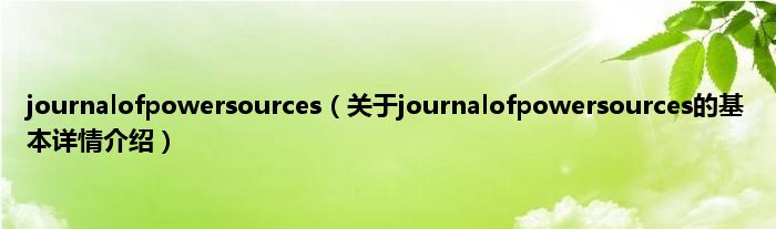 本文关于journalofpowersources的基本详情介绍就讲解完毕,希望对大家有所帮助。