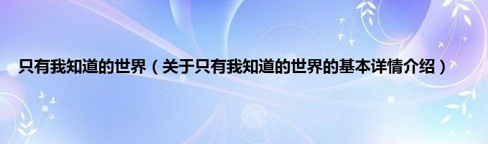 本文关于只有我知道的世界的基本详情介绍就讲解完毕,希望对大家有所帮助。