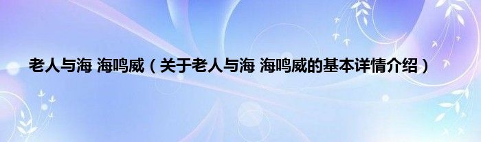 老人与海 海鸣威(关于老人与海 海鸣威的基本详情介绍)