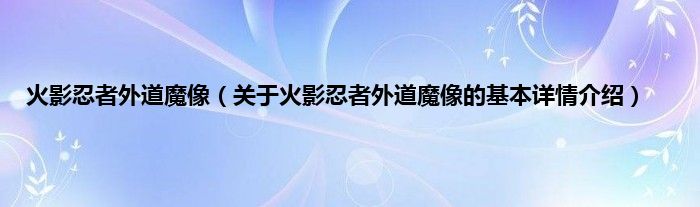 本文关于火影忍者外道魔像的基本详情介绍就讲解完毕,希望对大家有所帮助。