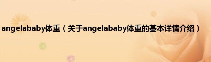 本文关于angelababy体重的基本详情介绍就讲解完毕,希望对大家有所帮助。