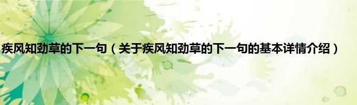 本文关于疾风知劲草的下一句的基本详情介绍就讲解完毕,希望对大家有所帮助。
