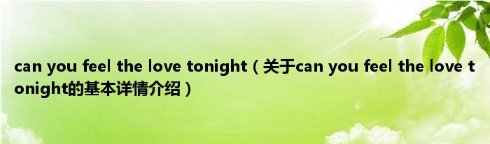 本文关于can you feel the love tonight的基本详情介绍就讲解完毕,希望对大家有所帮助。