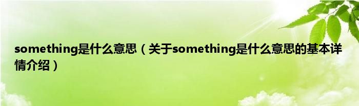 本文关于something是什么意思的基本详情介绍就讲解完毕,希望对大家有所帮助。