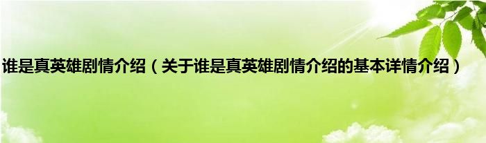 本文关于谁是真英雄剧情介绍的基本详情介绍就讲解完毕,希望对大家有所帮助。