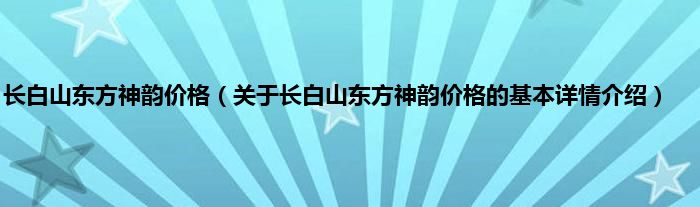 本文关于长白山东方神韵价格的基本详情介绍就讲解完毕,希望对大家有所帮助。