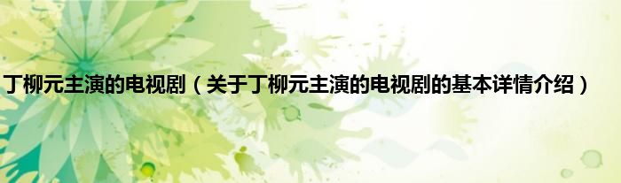 本文关于丁柳元主演的电视剧的基本详情介绍就讲解完毕,希望对大家有所帮助。
