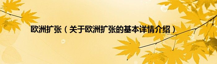 本文关于欧洲扩张的基本详情介绍就讲解完毕,希望对大家有所帮助。