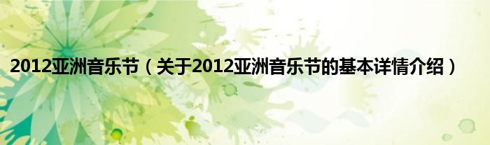 本文关于2012亚洲音乐节的基本详情介绍就讲解完毕,希望对大家有所帮助。