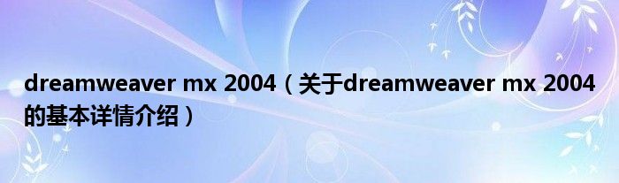 dreamweaver mx 2004(关于dreamweaver mx 2004的基本详情介绍)