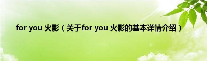 for you 火影(关于for you 火影的基本详情介绍)