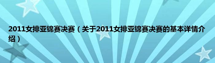 2011女排亚锦赛决赛(关于2011女排亚锦赛决赛的基本详情介绍)