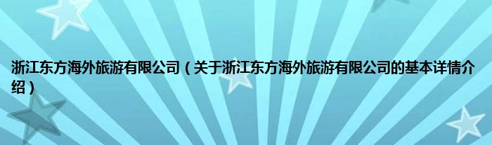本文关于浙江东方海外旅游有限公司的基本详情介绍就讲解完毕,希望对大家有所帮助。