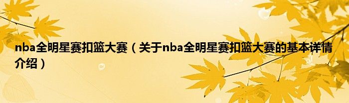 本文关于nba全明星赛扣篮大赛的基本详情介绍就讲解完毕,希望对大家有所帮助。