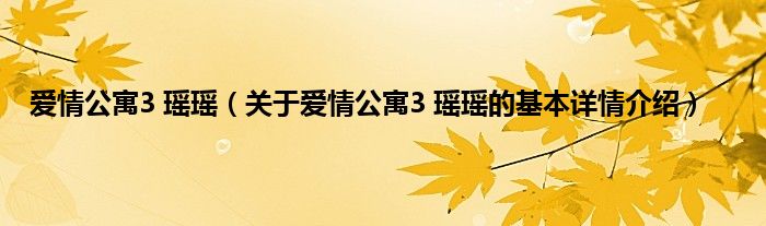 爱情公寓3 瑶瑶(关于爱情公寓3 瑶瑶的基本详情介绍)