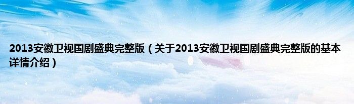 本文关于2013安徽卫视国剧盛典完整版的基本详情介绍就讲解完毕,希望对大家有所帮助。