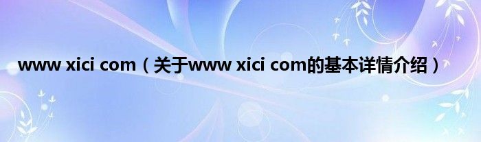 www xici com(关于www xici com的基本详情介绍)