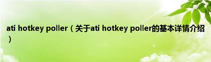 本文关于ati hotkey poller的基本详情介绍就讲解完毕,希望对大家有所帮助。