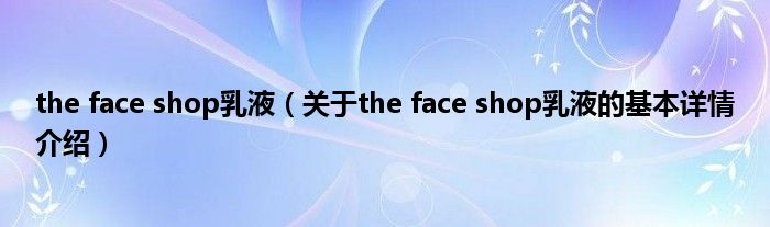 本文关于the face shop乳液的基本详情介绍就讲解完毕,希望对大家有所帮助。