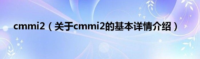 本文关于cmmi2的基本详情介绍就讲解完毕,希望对大家有所帮助。