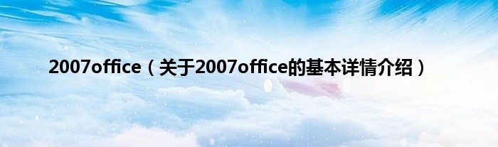 本文关于2007office的基本详情介绍就讲解完毕,希望对大家有所帮助。