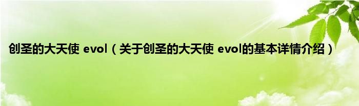 本文关于创圣的大天使 evol的基本详情介绍就讲解完毕,希望对大家有所帮助。