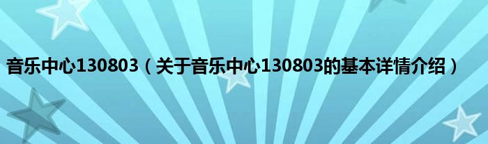 本文关于音乐中心130803的基本详情介绍就讲解完毕,希望对大家有所帮助。