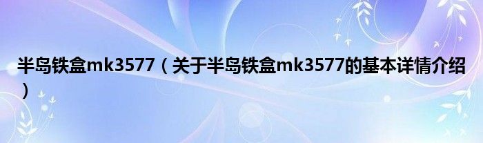 本文关于半岛铁盒mk3577的基本详情介绍就讲解完毕,希望对大家有所帮助。