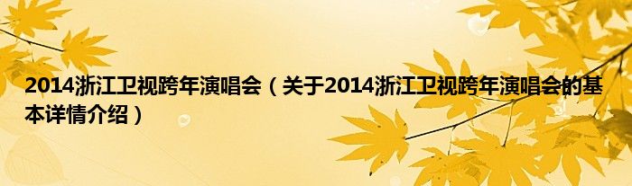 本文关于2014浙江卫视跨年演唱会的基本详情介绍就讲解完毕,希望对大家有所帮助。