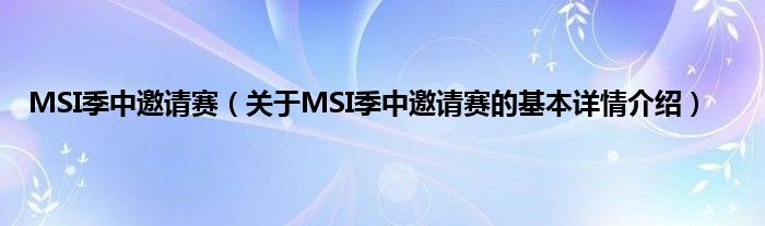 本文关于MSI季中邀请赛的基本详情介绍就讲解完毕,希望对大家有所帮助。