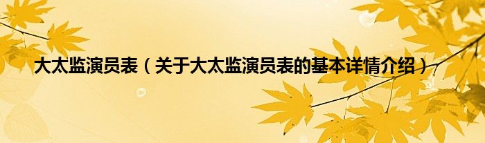 本文关于大太监演员表的基本详情介绍就讲解完毕,希望对大家有所帮助。